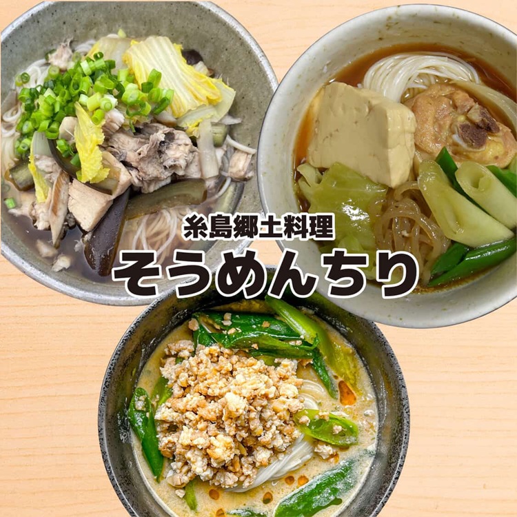 ぜひ味わってもらいたいのは、糸島の郷土料理「そうめんちり」。甘めのだしで鶏肉や野菜、そうめんを煮込んだ優しい味わいは、まさに糸島のソウルフード。定番の鶏肉だけでなく、魚ベースや担々麺風など、ブースごとに趣向を凝らした3種類の味が登場します。温かいそうめんちりをハフハフしながら食べ比べてください!そうめんちりは1杯600円(チケット制)。オトクな3種食べ比べセット(限定100セット)は1650円です。