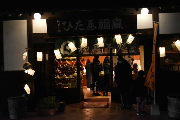 翌日から始まる『筑後吉井おひなさまめぐり』の前夜祭として開催されるこのイベント。いつもは夕方に閉まる各店が、この日は特別に夜まで営業。夜の帳が下りるころから、ちょうちんの温かな灯りが白壁を照らし、非日常的な空間が広がります。各店を巡るスタンプラリーも実施。買い物や体験をしてスタンプを5個集めると、1回くじを引くことができます(景品は先着100人限定)。