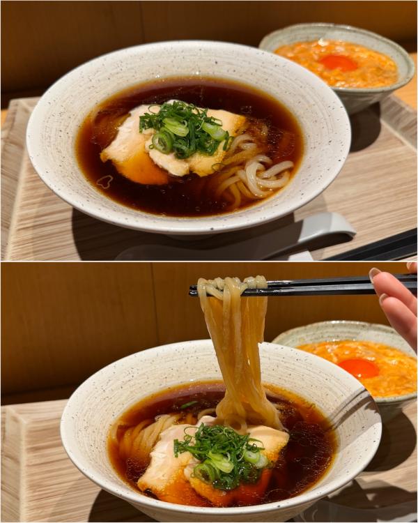 甘めの醤油と深みのある出汁、そこに絡むモチモチの麺、低温調理の鶏チャーシューが一体となり、かなり満足感のある一品でした。