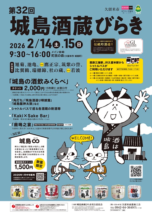 問い合わせ:0942-64-3649(城島酒蔵びらき実行委員会)