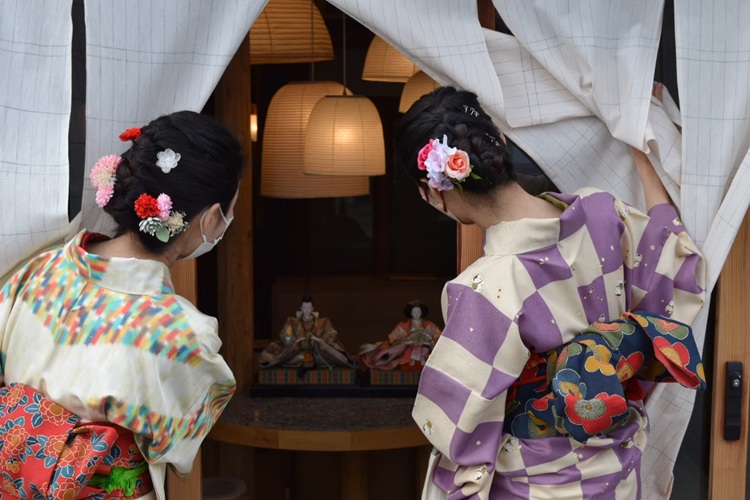 江戸時代から昭和初期の建物が残る「白壁の町並み」を歩くと、軒先に下げられた桃色の「ぼんぼり」が至る所でお出迎え。実はこれ、「ここにおひなさまが飾ってあるよ」という目印なんです。その数、なんと約100カ所!商店や民家の座敷に大切に飾られた、八女伝統の「箱びな」から現代のおひなさままで、いろんなひな飾りが街を彩ります。スタンプラリーも実施されているので、お気に入りのおひなさまを探しながら、ゆっくりとお散歩を楽しんでみては?