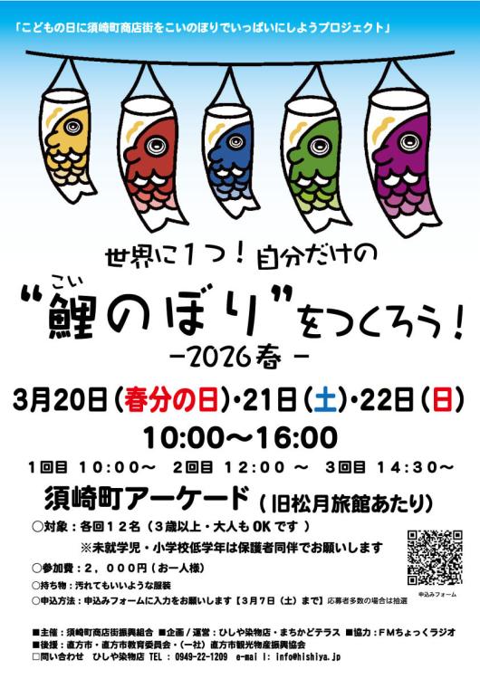 【3/20~22】わが子の作品が商店街を泳ぐ!伝統の技に触れる「刷毛染め」で鯉のぼりを作ろう!※3/7応募締切(福岡・直方市)【イベント】
