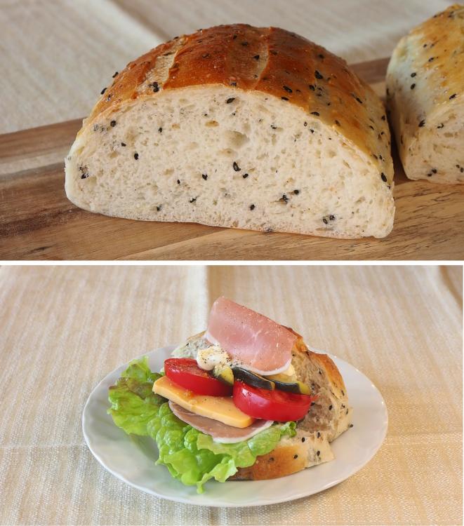 白ゴマと黒ゴマの香ばしさが広がるシンプルな味わい。サンドイッチにするのもおすすめです。