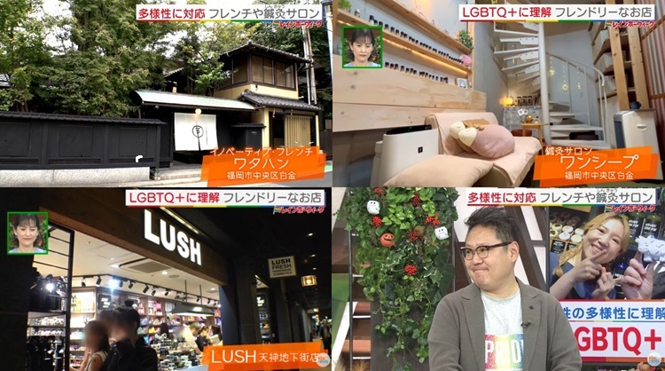「Wish+」のスタジオに「九州レインボープライド」代表の三浦暢久さん(愛称:あなたののぶえちゃん)が出演。LGBTQ+の人たちも安心して利用できる「フレンドリー」な福岡のお店3軒の温かい心遣いを紹介しました。
