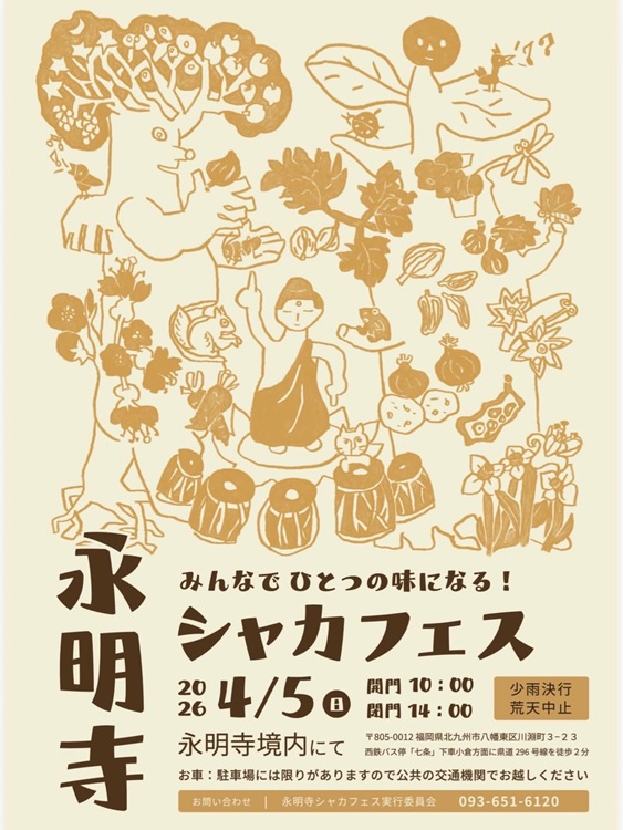 北九州市八幡東区にある永明寺(えいみょうじ)で、4月5日(日)に『永明寺シャカフェス』が開催されます。