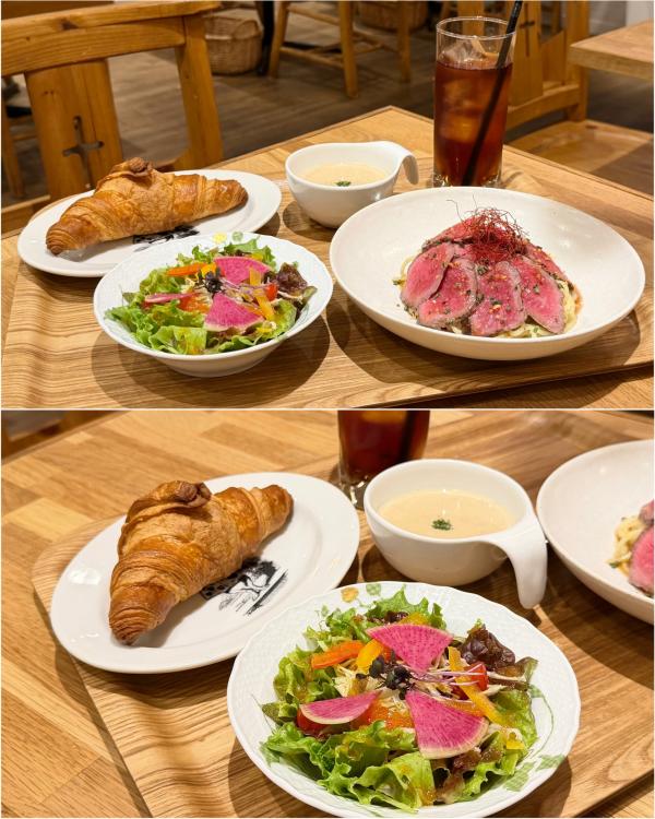 サラダ・スープ・クロワッサン・ドリンクの中から3つ選べるスタイルで、その日の気分に合わせて選べるのが嬉しいポイントです。