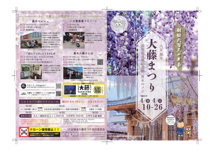 問い合わせ:0943-42-1112(八女市役所 黒木支所)