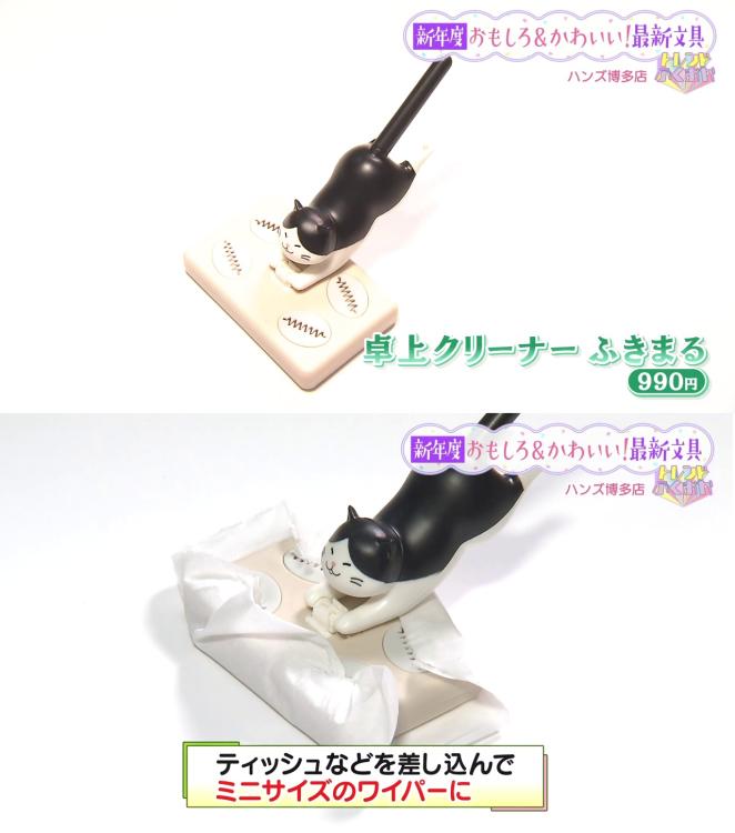 続いては、デスクに置いておくだけで癒やされる、猫のデザインが施された「卓上クリーナー ふきまる」(990円)。