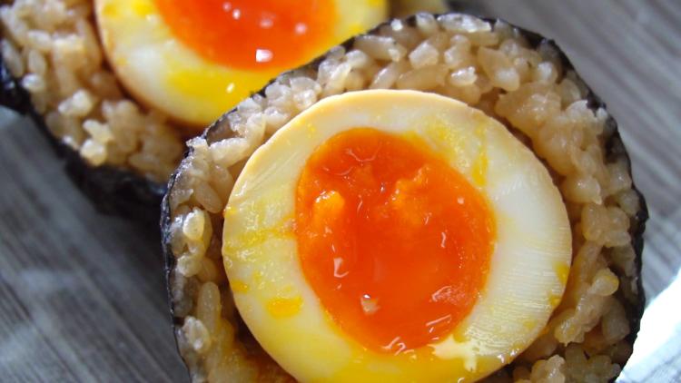 煮たまごが丸ごと1つ入った、ボリューム満点のおむすび。