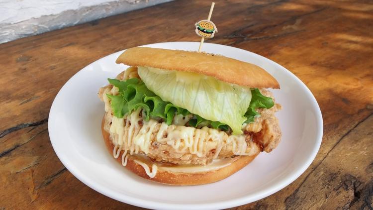 バンズから大きくはみだした唐揚げは存在感抜群!