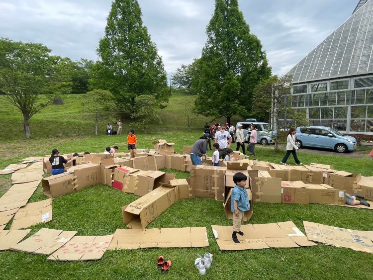 公園に到着すると、まず目に飛び込んでくるのが、青空を悠々と泳ぐ約150匹の鯉のぼり!会場内には、子どもたちが夢中になる「段ボール迷路」や、探偵気分で挑戦する「謎解きゲーム」、みんなで汗を流す「ミニ運動会」など、一日中遊び尽くせるコンテンツがめじろ押しです。