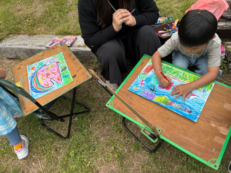 さらに、かわいいポニーの「えさやり体験」や、のびのびと絵を描く「スケッチ大会」も開催。ステージではバンド演奏が会場を盛り上げ、おいしいものいっぱいのバザー(出店)もあるので、大人も一緒に楽しめます。