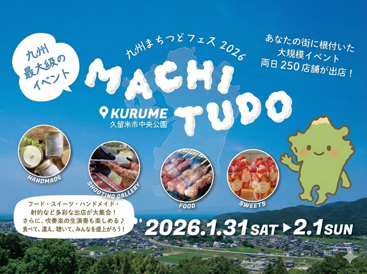 【1/31・2/1】グルメや雑貨250店舗が久留米に集結!『九州まちつどフェスタ2026』(福岡・久留米市)【イベント】