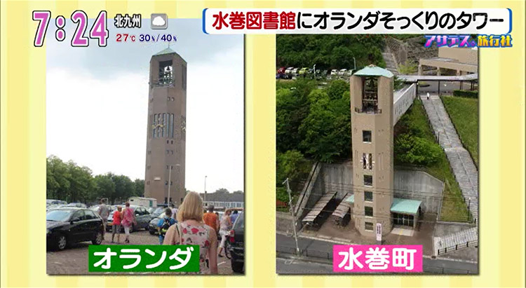 オランダの「ポルダータワー」と水巻町図書館にあるタワー