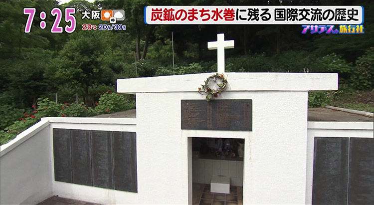 黒河さんが案内してくれたのは、「十字架の塔」。実は第二次世界大戦中、水巻町にあった炭鉱で約800人ものオランダ人捕虜が労働を強いられていたといいます。その捕虜の1人、ドルフ・ウィンクラー氏が戦後、水巻町を訪れたことから平和を願う場所として、この十字架の塔がつくられたそう。今では、水巻町の平和のシンボルとして大切な存在となっています。