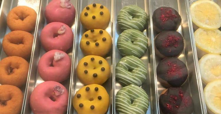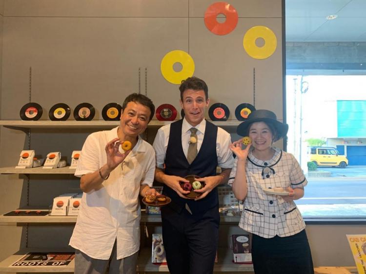 一行がやってきたのは、大牟田市のとてもおしゃれなレンガ造りの建物。ここに、女子たちがこぞって買いにくるというドーナツがあるというのです。中に入ると、これまたおしゃれな空間が広がっていました。そして、カウンターに並ぶ色とりどりのドーナツたち。これは映えまくる!