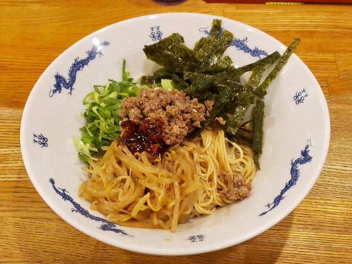 まぜそば風の「レスラー麺」(¥650)。プロレスラーが作るから“レスラー”、スープが“レス”ラー麺。ダジャレである笑
