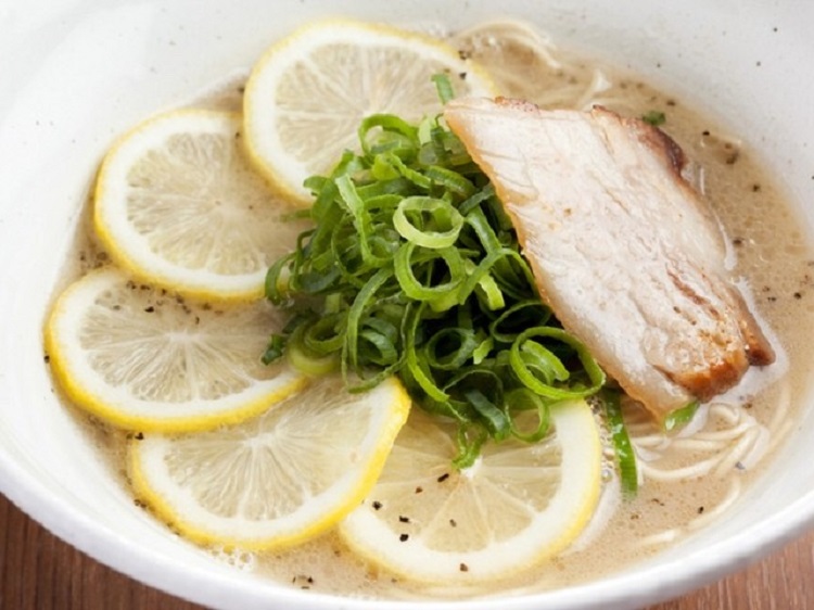 久留米ラーメンの気鋭店「らーめん二刀流 真麺 武蔵」の檸檬豚骨ラーメン。濃厚な豚骨スープと爽やかなレモン果汁がマッチ