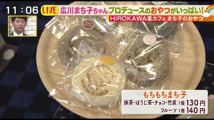 実はまち子ちゃんの職業は、パティシェなのです! 同店には、まち子ちゃんプロデュースのお菓子がたくさん。一大ブームを巻き起こしているタピオカの粉(タピオカ粉)を生地に使ったもちもち食感の「もちもちまち子」(抹茶、焙じ茶、チョコ、竹炭、フルーツ)、ピンク色の「初恋ぶっせ」に「ひろかわマドレーヌ」。そして、ここでしか食べられない限定スイーツ「まち子のほっぺ」が大人気。あまおうをふんだんに使ったムースの中に、またあまおうの果肉が隠れているという楽しいケーキです。まち子ちゃんの“そばかす”まで再現しているこだわりよう。