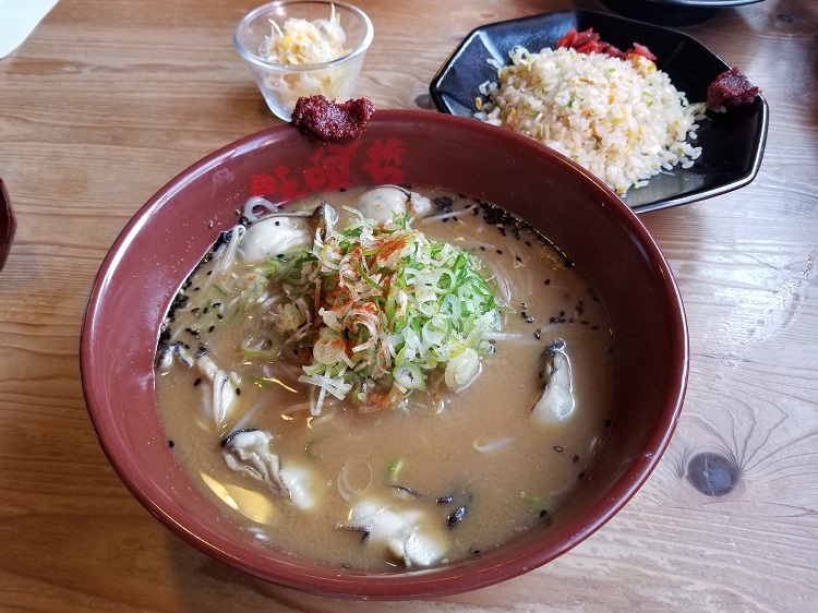 大ぶりのカキがゴロゴロ入る「かき味噌らーめん」(¥800)。3月下旬までの限定