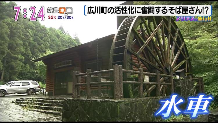 今回聞き込みをして探すのは有名な八女茶についてではなく、「広川町の活性化に奮闘するおそば屋さん」。ジェフ太郎君が広川町を訪れ、町民にインタビューしていくと、「山の奥におそば屋さんがある」「逆瀬(さかせ)谷のゴットン館にあります。水車があるからわかりやすいと思う」「元消防署に勤めていた方で定年してから(開店)されている」と情報が次々と出てきます。そのそば屋、町ではとても有名なようです。