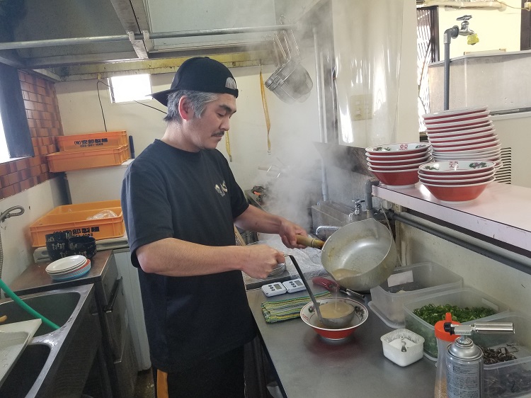 「鞍手町は程よく田舎で自然豊か。良質な井戸水でラーメンを作れるこの場所に惚れて移転を決意しました。いい水を使うと旨いスープができるのはもちろん、豚骨の下処理に水道代を気にせず大量の水を使えるのも利点。しっかりと臭みを取り除けます」と店主の宇都宮さん。