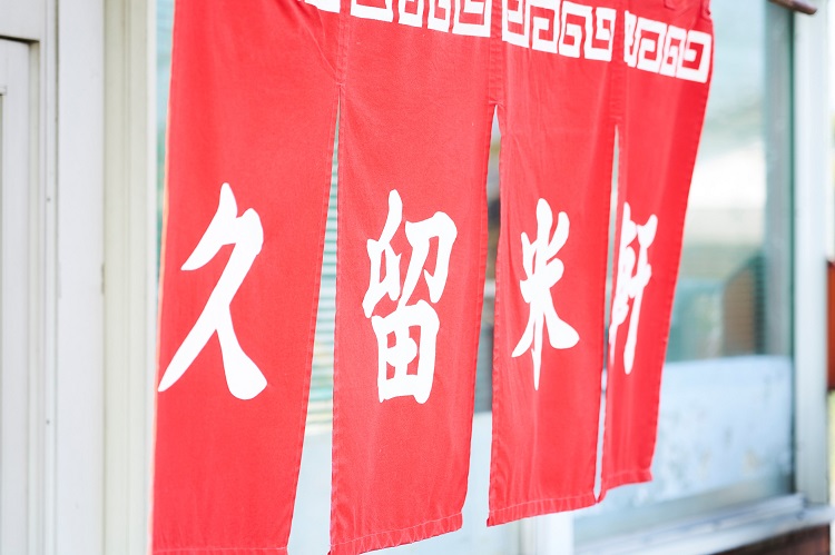 創業50年を超える「久留米軒」。赤い暖簾が目印