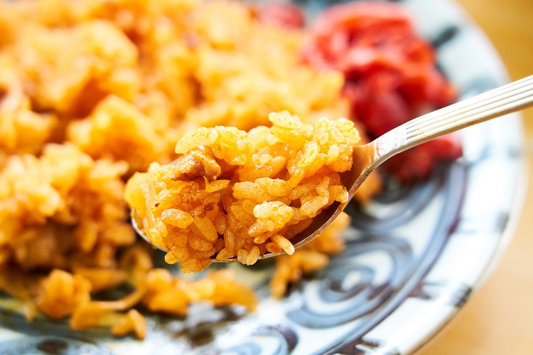 ラーメンはあっさり豚骨。脂っこさ、ギトギト感がなく塩気を程よく効かせている。最初から紅ショウガをのせているのも珍しい。そして、チキンライス。具は鶏肉とタマネギといたってシンプル。ケチャップの酸味と、豚骨スープのコクが絶妙に溶け合う名コンビだ。