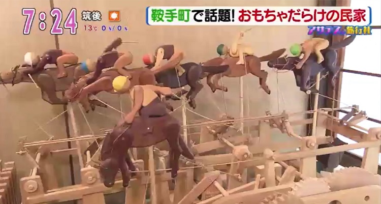 早速、件のスポットである田中さんのご自宅に伺うことに。「見た目は普通の住宅ですけどね」と中に入ると、「え?え?え?」と戸惑うボビー。そこにはリビングいっぱいにおもちゃ!おもちゃ!おもちゃ!360℃全体がオモチャに囲まれ、入りきらいないものは押入れの中にも。「話題の民家」とは、数千点の木のおもちゃがたくさんある「おもちゃの家」だったのです。