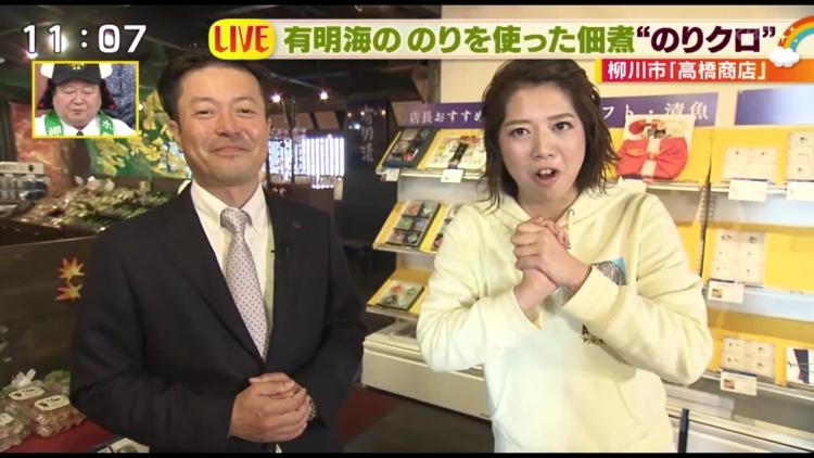 高橋商店の金子智明さん(左)とアイタガールの田代リポーター