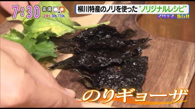 さらに、サクさんが柳川のノリを使った“ノリジナルレシピ”の1つ、「のりギョーザ」も紹介してくれました。餃子餡をノリで包んだメニューに、「面白い!ノリに包まれていることで風味が全然違う。サクッとした食感とやわらかい食感と、違った食感が楽しめる」とボビー大絶賛!他にも、ノリとスライスチーズを重ねた「のりのミルフィーユ」もワインやビールと合いそうと、おいしそうにパクパク食べていました。