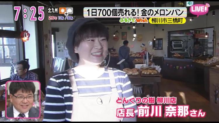 石井裕二リポーターとHKT48の田島芽瑠ちゃんが訪れたのは、柳川市三橋町にあるパン屋「どんぐりの樹」。2人を迎えてくれたのは、かわいい“どんぐり帽子”を被った店長の前川奈那さん。「店内には約90種のパンが並んでいます」と前川店長の案内を受けながら、石井レポーターと芽瑠ちゃんは「どれもおいしそう!」と目移りが止まりません。