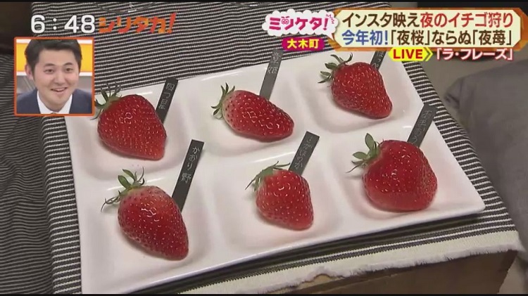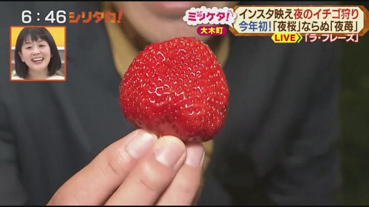 「観光農園 ラ・フレーズ」では、4月の午後7時から9時まで2時間、イチゴ狩りができるんです!