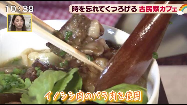 沢田アナ大絶賛だった「いのししだご汁」(780円)。イノシシ肉がほろほろになるまで煮込まれていてやわらかく甘みも