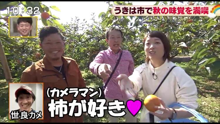 古墳大好きな沢田アナは「うきは市は良い古墳がいっぱいあるから、行きますか?」ととぼけます。古墳もいいですが…まずは旬を迎えているという柿狩りへGO!