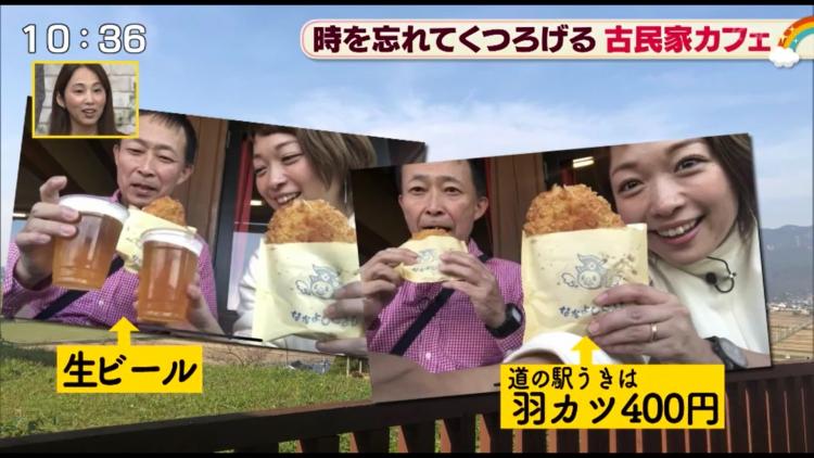 VTRでは詳細をお伝えできませんでしたが、柿狩りのあとに道の駅うきはへ立ち寄ってちゃっかり生ビール&名物の「羽カツ」を堪能していた二人!
