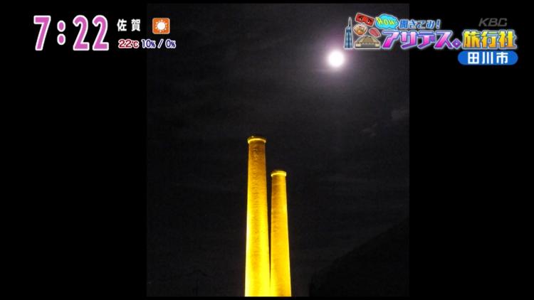 夜はライトアップされ幻想的な雰囲気に。毎年11月は煙突の下に1万5千人が集う「炭坑節総踊り」が開催される。