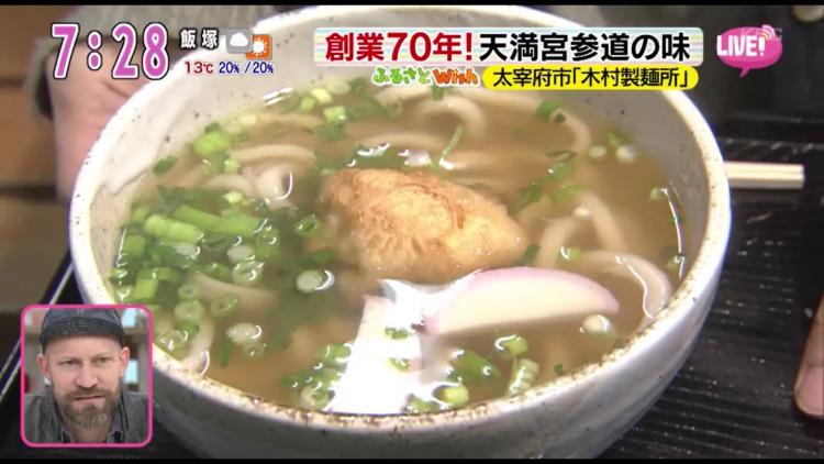 実は、太宰府駅から徒歩3分の「さいふうどん」でも味わうことができます。その「さいふうどん」で一番人気という「めんたい天うどん」もいただくことに。「おいしい~!」と百市リポーターの満面の笑みで、そのおいしさが伝わってきました。
