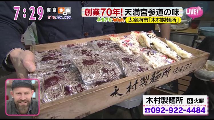 2019年12月13日(金)に放送されたKBCの情報番組「アサデス。KBC」では、石井 裕二&百市 なるみリポーターが、福岡県太宰府市にある「木村製麺所」から生中継しました。年末年始の製麺所は特に大忙しということで、この日も朝からフル稼働!一風変わった麺も作っているとのことで、どんな麺なのでしょうか。