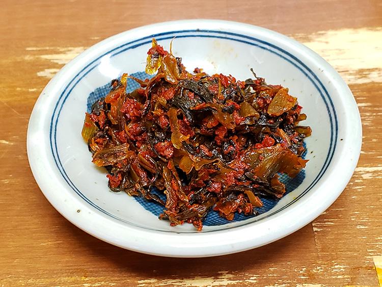 高菜のみずみずしさ、食感を残すように炒めてあり、辛さは中。