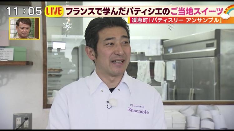 須恵町の「パティスリーアンサンブル」は、約1年半前にオープン。「フランス菓子をベースにして、地産地消を心掛け、地域の皆さんに愛されるケーキを作っています」と話す喜田さんは、フランスで2年間修業し、福岡市内の元5つ星ホテルで腕を振るっていたパティシエです。