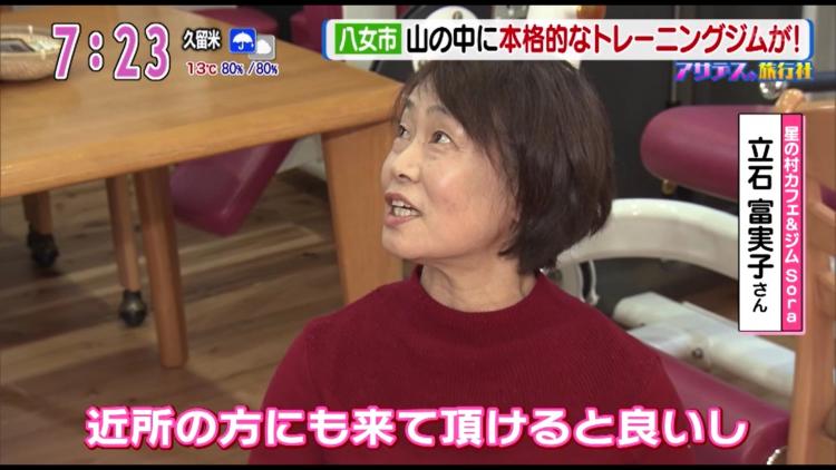 なぜ、こんな場所にジムを開いたのでしょう?オーナーの立石富実子さんにうかがうと「夫が脳梗塞で半身不随になって。そのリハビリのために作ったんです。そして、近所の方にも来ていただきたくて」。星野村の周辺には、病院や運動施設が少ないそう。そのため、地元の人の健康維持に使ってもらおうとオープンしたといいます。定期レッスンだけでなく、1回300円でだれでも利用可能。これなら気軽に通えますね!