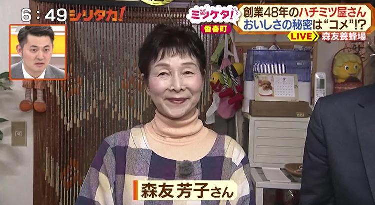 そんなハチミツを紹介してくれた養蜂場の森友芳子さんの横で、「皆さん、お気づきですか?芳子さんの肌、すっごくキレイじゃないですか!」とカイラくん。確かに、御年70歳とは思えない、美肌の持ち主!実はこのお肌の秘密もハチミツ!「え?!そのまま!?」とスタジオが驚愕するお手入れ法は、市販の美容クリームなどにハチミツを少し混ぜて、そのままお肌へ塗り込むだけ。実際に顔にヌリヌリしてもらったカイラくんですが、「全然、ベトベトしてないんですよ!」と満面の笑み。さらりとしたハチミツだからこそできる、美肌法です。