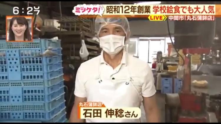 シュンシュンと湯気が立つ蒸し機から出てきたのは、出来立てつやつやのイカ天!こちらのかまぼこは地元の学校給食にも出されているそう。「3月から3か月間、給食が中止になり大変な思いをしました。しかし明日(6月2日)から再開しますので、前向きに一生懸命やっていきたいと思っています!」と店主の石田伸稔さん。