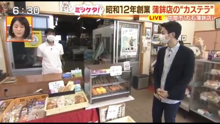 伊達巻のようにほんのり甘く、お酒のあてにもなるそう。代々受け継がれている厚焼きカステラの表面には、世界遺産に認定された、中間市の「遠賀川水源地ポンプ室」がモチーフの絵と“なかま”の文字が焼き印でほどこされています。「地元の方あっての丸石蒲鉾。これからも中間市のみなさんと一緒に頑張っていけたら」。石田さんは、そう力強く話してくれました!