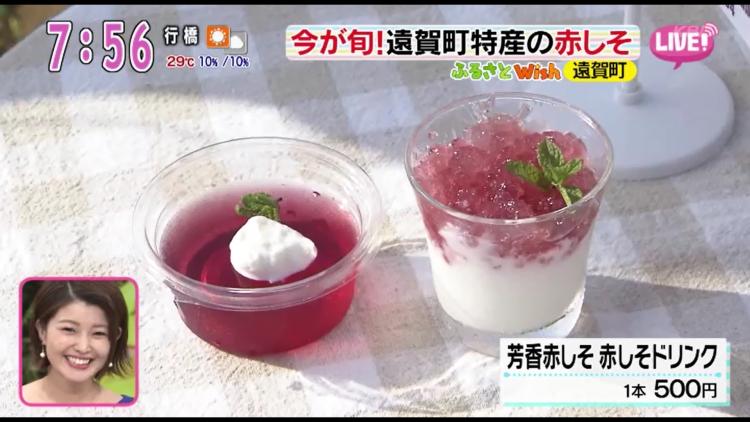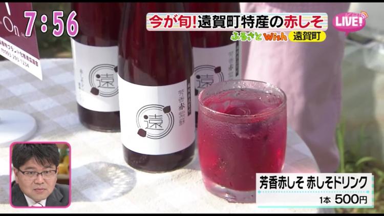 遠賀町では「芳香赤しそ 赤しそドリンク」も作っています。同町産のはちみつで甘みを加えており、毎年好評だそう。今年度の赤しそドリンクは6月19日から販売の予定です。