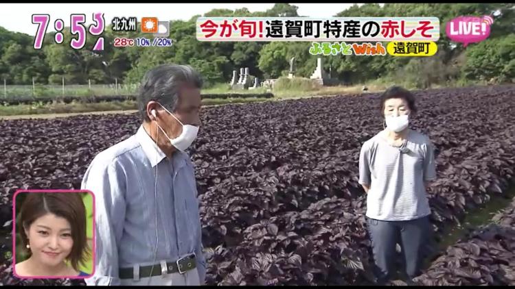 朝の情報番組「アサデス。KBC」(6月5日放送)で、財津南美リポーターとジェフ太郎リポーターが訪れたのは、遠賀町の赤しそ畑。見渡す限り、美しい紫色の赤しそが広がっています。