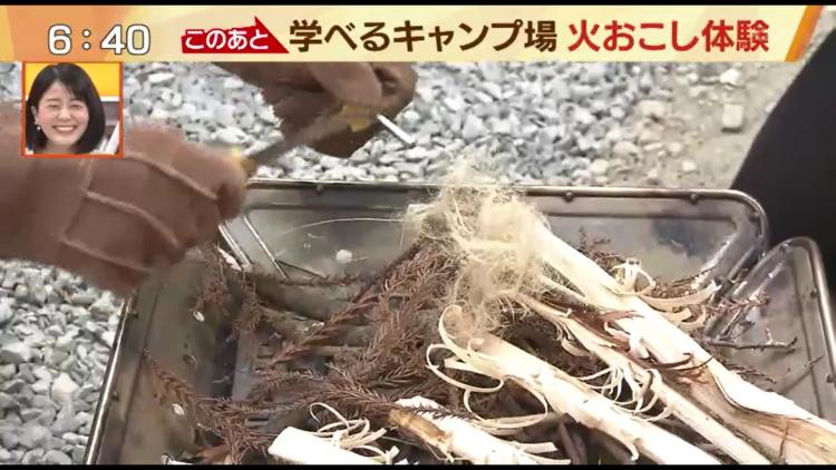 プロが教える体験学習!中継で藤木さんがリポーターのカイラ君に教えてくれたのは“火起こし体験”。アウトドア用のスチールマッチを使って実践します。「センスがあれば10~20秒くらいでつきます!」と言われてCMへ。。。約1分後のCM明けには燃え盛る炎が・・・・・あれ?まったく火が付いた様子がありません。そのあとも、中継終わりまでずーーーーっとスチールマッチを擦っていたカイラ君ですが、結局かすかな煙さえ上がりませんでした。本当は、もうちょっと簡単にできるはずなのでご安心ください。