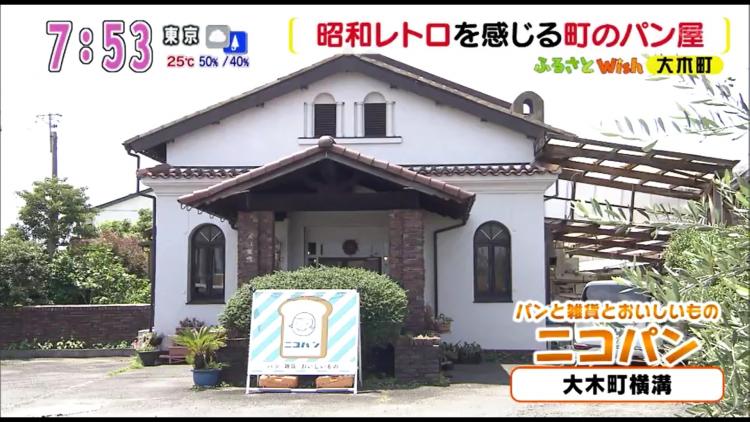 着いたのは、県道沿いに建つ一風変わったレトロな建物。手作りパンと雑貨、おいしいものを扱う「ニコパン」です。アーチ型の窓や、屋根の上にそびえる防空監視哨(しょう)、お店の扉に時代を感じます。早速中に入ってみましょう。