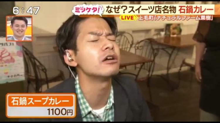 実は、こちらでスープカレーが食べられるんです!グツグツ地獄状態のスープにライスをつけて~、実食。「あ~もう最高…」。肉厚で香ばしいチャーシューにカイラ君、やられちゃいました。